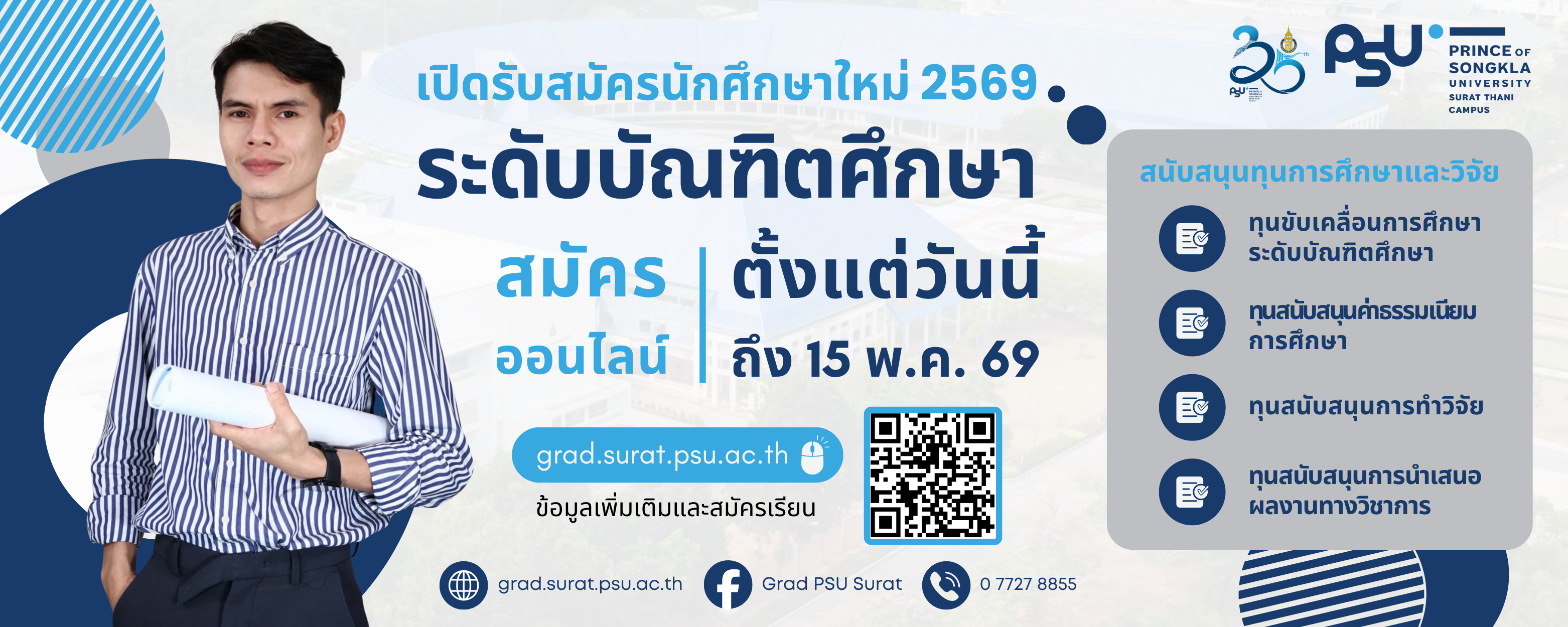 งานวิจัย บัณฑิตศึกษาและวิเทศสัมพันธ์สำนักงานวิทยาเขตสุราษฎร์ธานีมหาวิทยาลัยสงขลานครินทร์ วิทยาเขตสุราษฎร์ธานี31 ม.6 ต.มะขามเตี้ย อ.เมือง จ.สุราษฎร์ธานี 84000